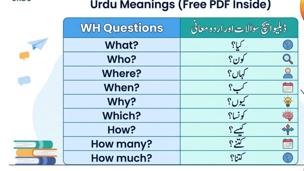 This blog post is based on a complete table of WH words with their Urdu meanings. You can use it as a quick reference anytime.
